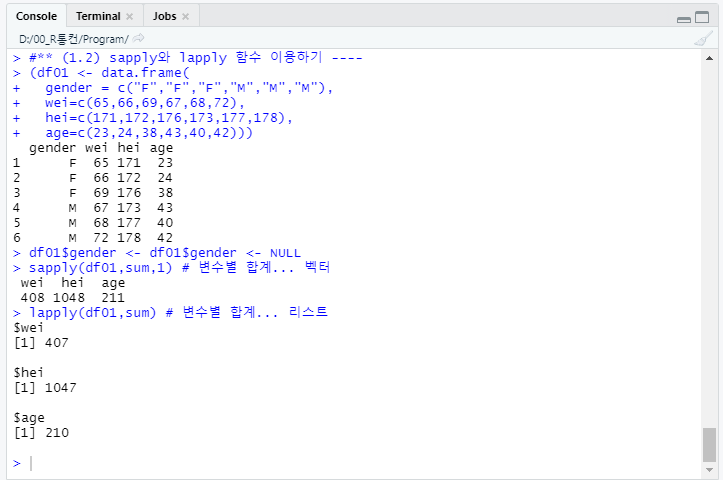 sapply 는 합계를 벡터 형태로 구합니다.