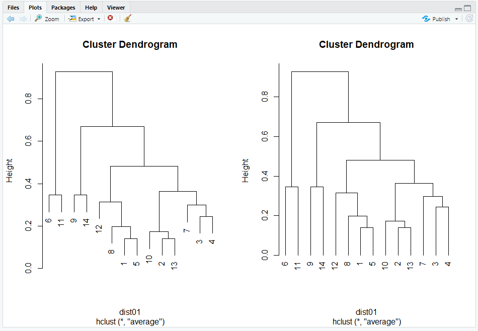 # dist01 <- round(dist(iris[1:14,1:4],method="euclidean"),digits=3);dist01